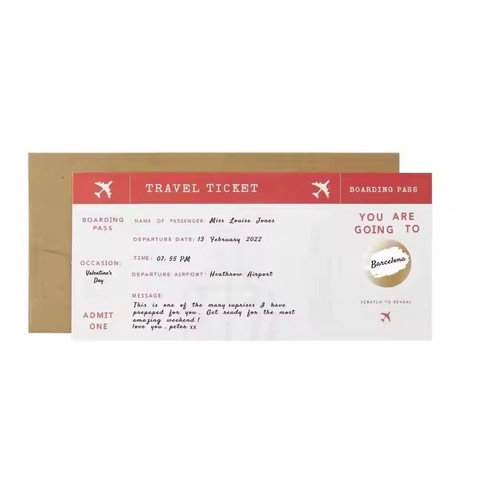 Biglietto d'imbarco per carta artistica in cartone diretto termico personalizzato con carta bianca con alta qualità di stampa termica